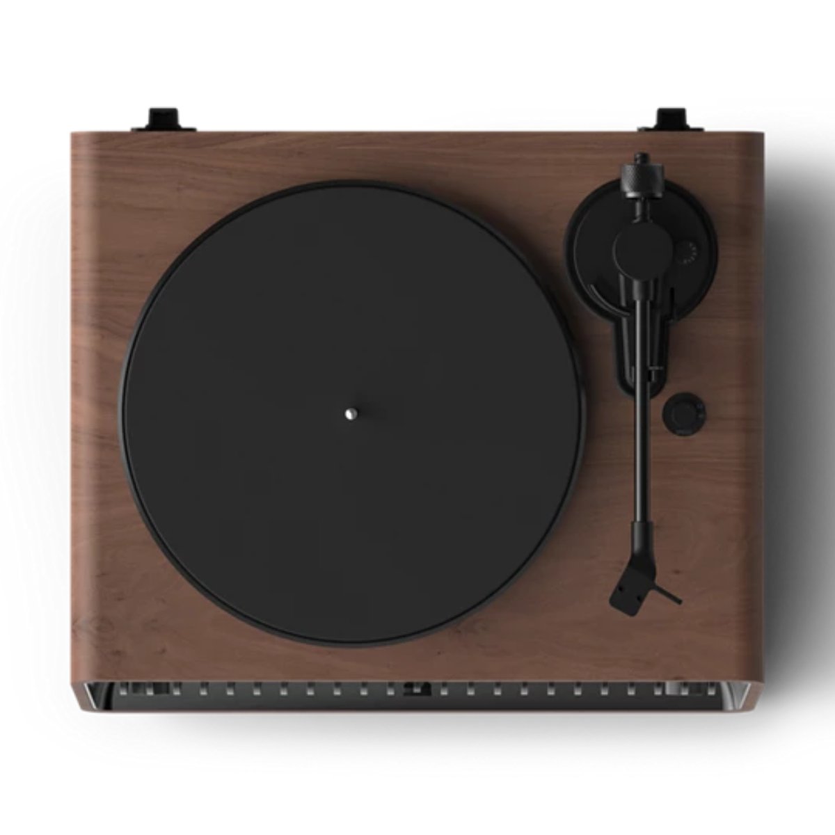 - Konstruktion/format: Integrerede højttalere, retro‑design i træ, støvdæksel, vibrationsdæmpet tonearm med kontravægt.