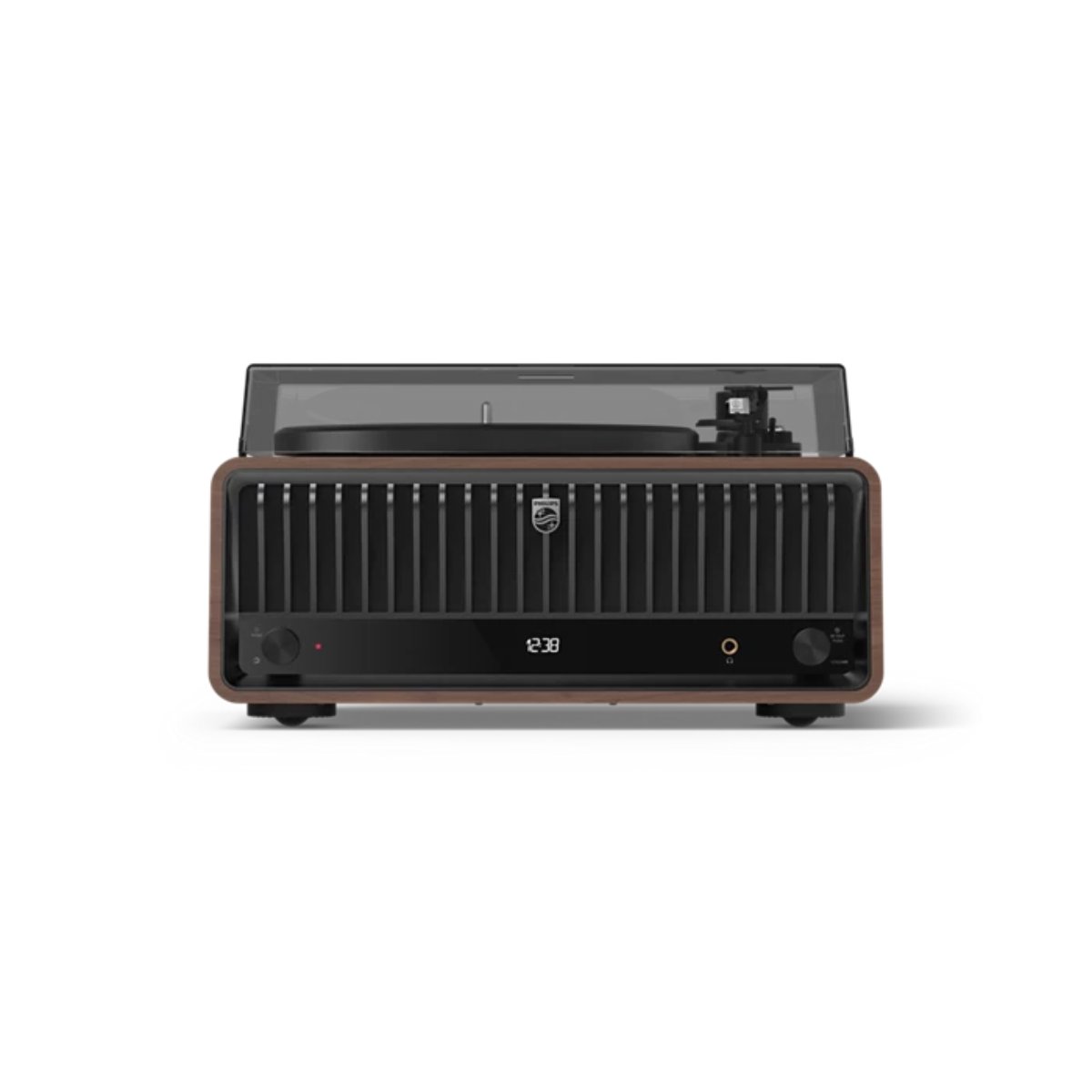 Philips Century‑pladespilleren kombinerer et markant retro‑design med moderne funktioner og lyd i topklasse. Udover at spille dine vinylplader (33⅓ og 45 rpm), kan den streame trådløst via Bluetooth 5.4, modtage DAB+/FM‑radio og levere kraftfuld lyd via indbyggede højttalere - hele 240 W max (120 W RMS). Med træfinish, tactile kontrolknapper og en ledsagende app får du både stil og funktion i ét system.