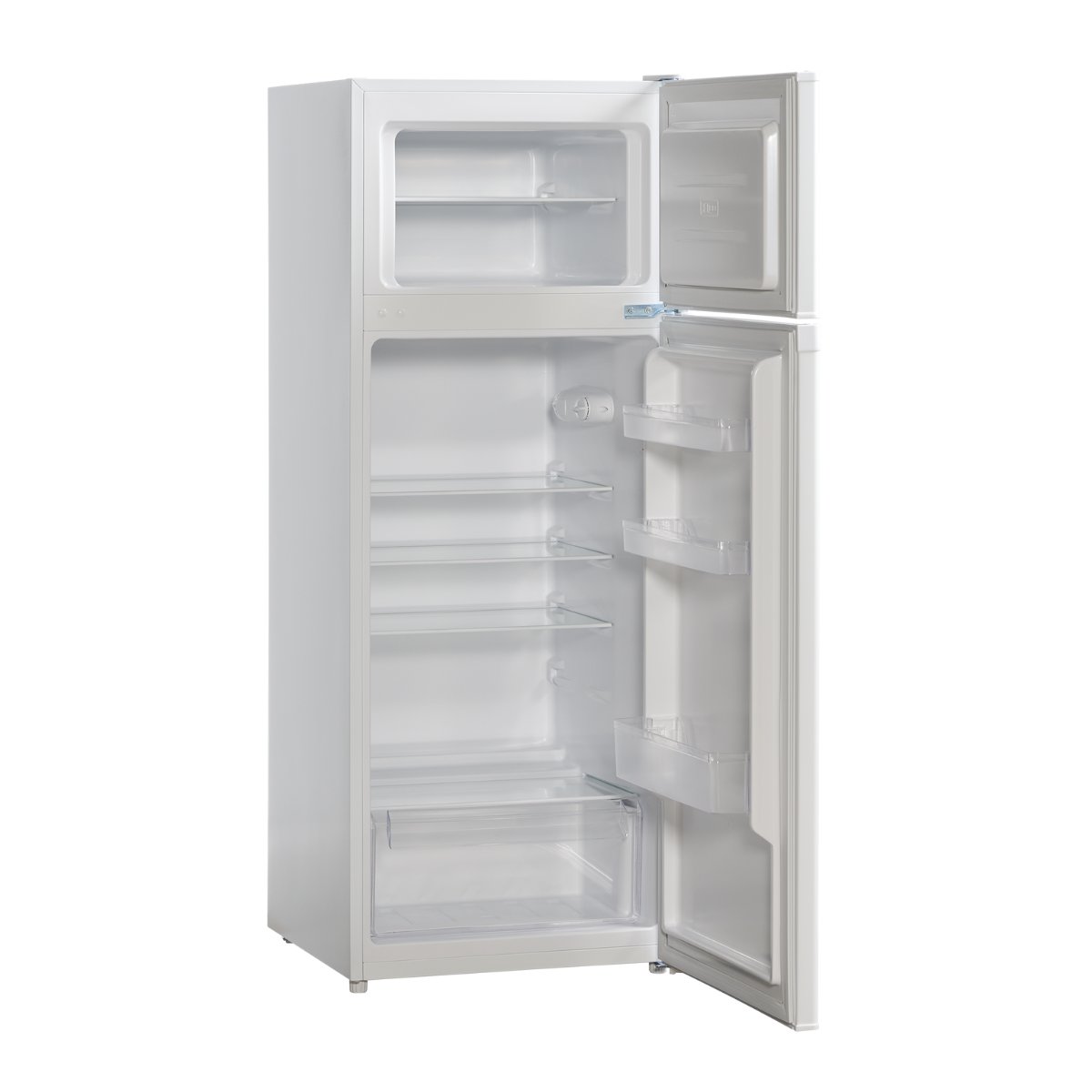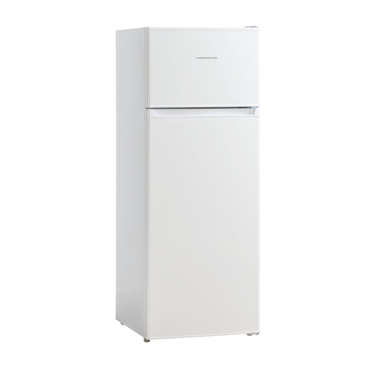 Scandomestic CBF206WE er et praktisk og rummeligt kombineret køle‑/fryseskab med både kølerum og separat fryser i toppen. Med samlet 206 liter bruttovolumen får du god plads til både ferske og frosne varer i et kompakt, hvidt design. Indvendig LED‑belysning, justerbare hylder og en stor grøntsagsskuffe giver dig nem og fleksibel organisering. Den vendbare dør gør det let at tilpasse åbningen efter dit køkkenlayout, og den mekaniske temperaturstyring sikrer enkel betjening. Et solidt valg til hjemmet eller ekstra opbevaring i køkkenet.