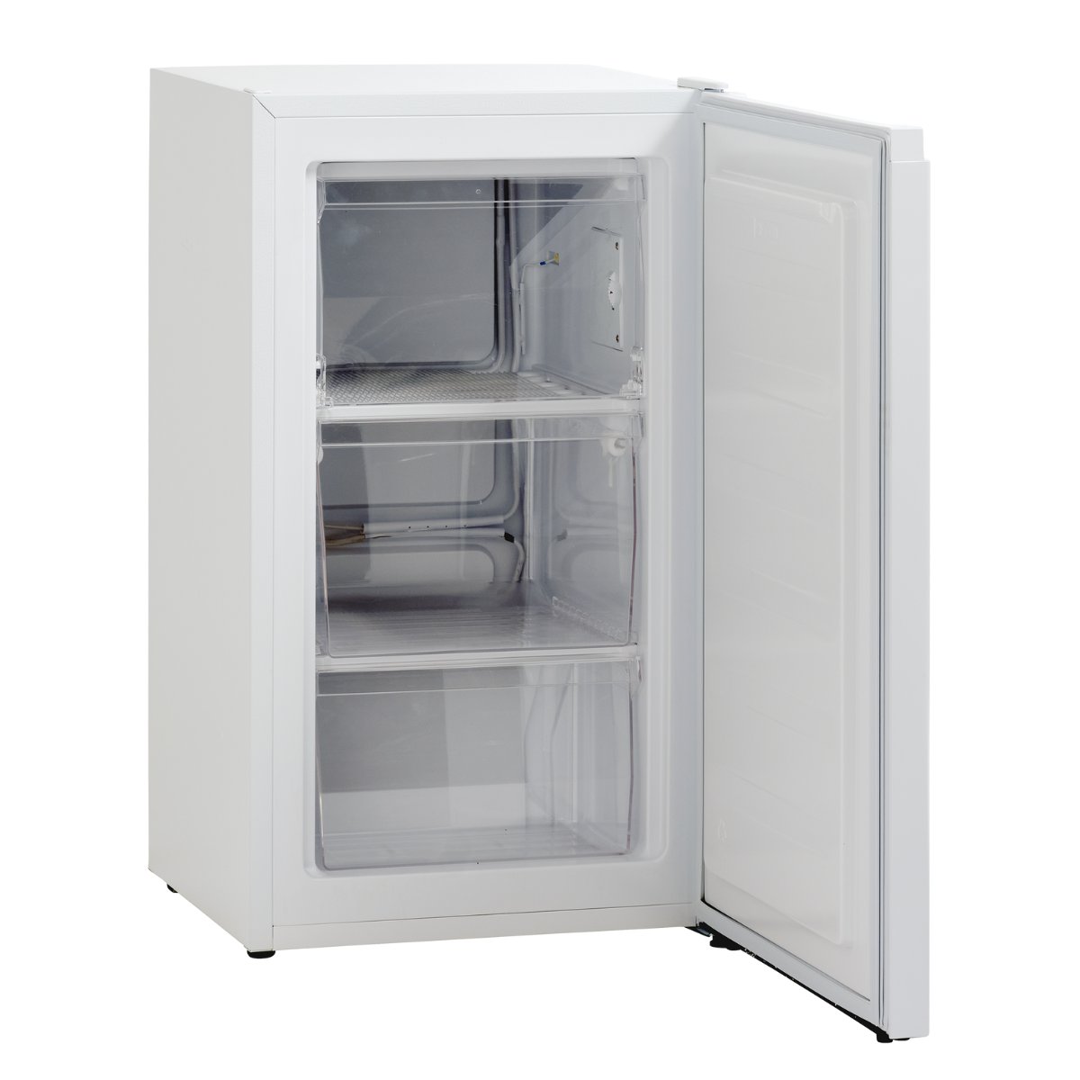 Scandomestic SFS 61 W er et kompakt og praktisk fritstående fryseskab med 61 liter kapacitet, der passer perfekt til små rum som køkkener, sommerhuse eller kollegieværelser. Indvendigt finder du både en hylde og to gennemsigtige fryseskuffer, så du nemt kan organisere dine frostvarer. Fryseren har vendbar dør, justerbare fødder og mekanisk styring, hvilket gør den fleksibel og nem at placere. Den fungerer med statisk køling og arbejder stille med et lavt støjniveau, så den ikke forstyrrer i hverdagen.