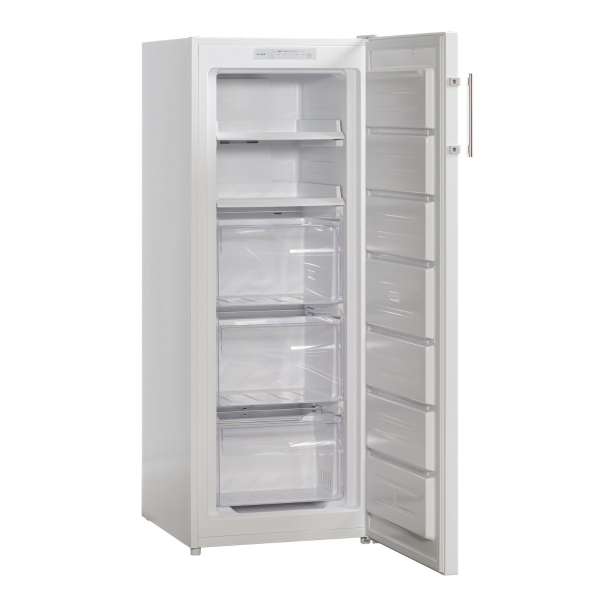 Scandomestic FRF161NFWE er et praktisk og rummeligt fritstående fryseskab med NoFrost‑teknologi, så du slipper for manuel afrimning og får bedre overblik over dine frostvarer. Det har flere gennemsigtige skuffer til enkel organisering af mad, og den vendbare dør giver fleksibel placering i køkkenet eller bryggerset. Med energiklasse E og lavt støjniveau er det en stabil og brugervenlig løsning til ekstra fryseplads i hjemmet.