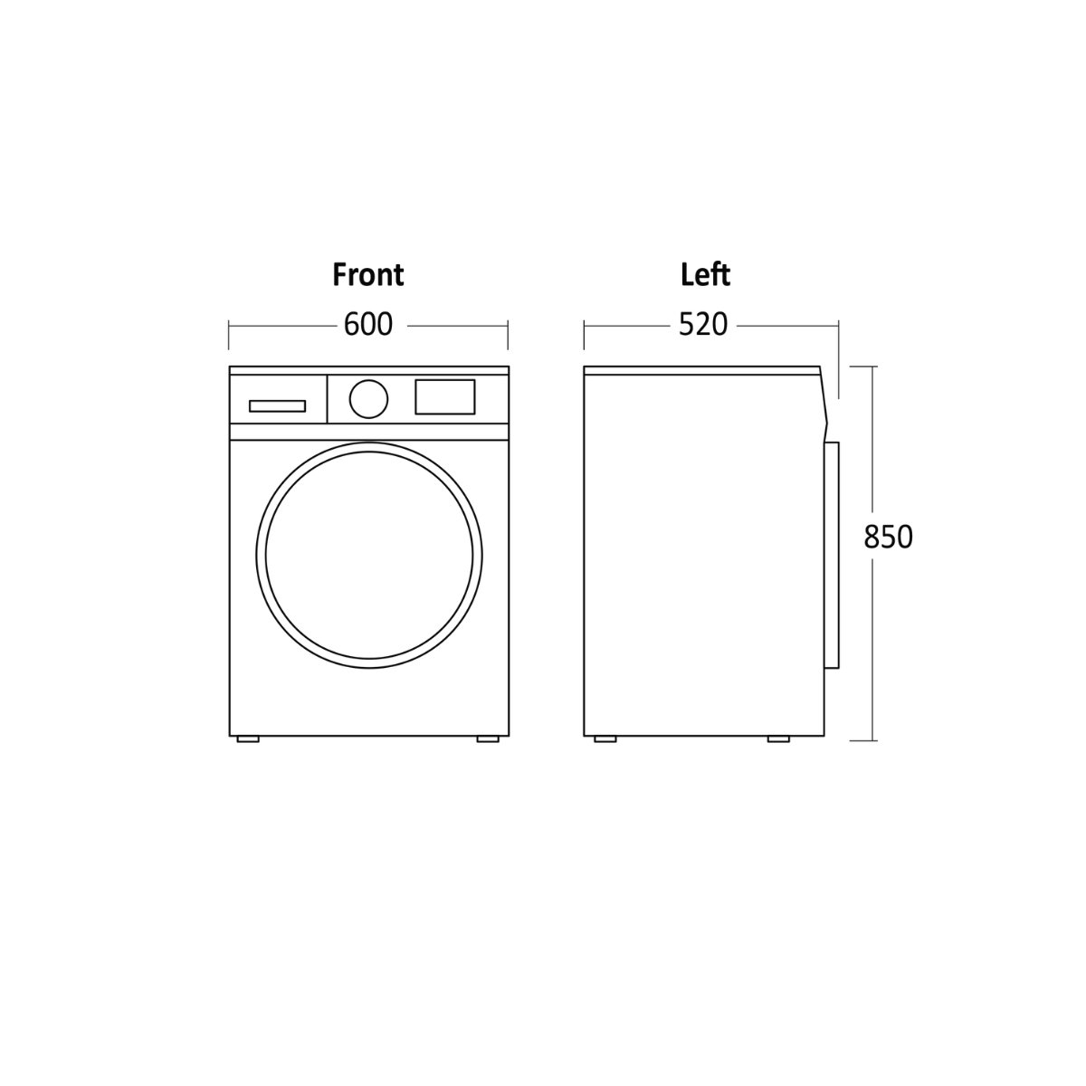 - Mål (HxBxD): Ca. 850 x 600 x 520 mm