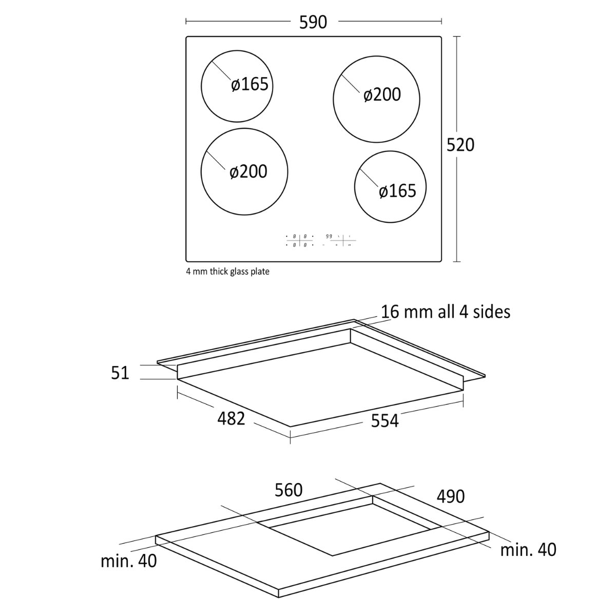 • Mål (HxBxD): 55 x 590 x 520 mm