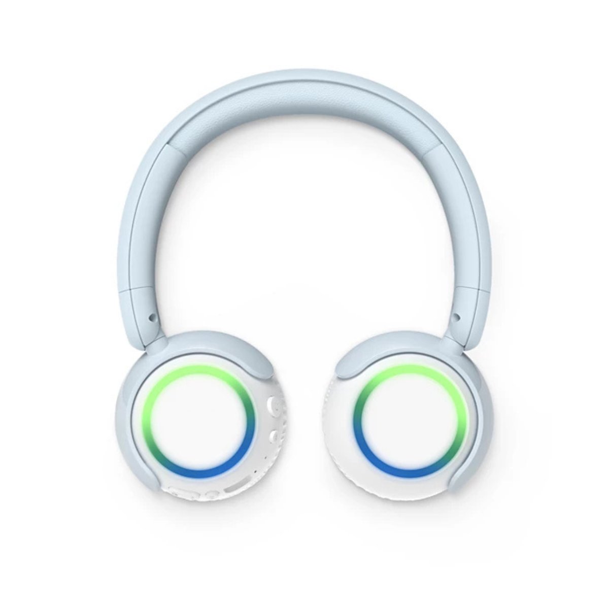 Philips TAK4200BL/00 er trådløse on-ear hovedtelefoner til børn, der kombinerer sikkerhed, komfort og sjov. Med en maksimal lydstyrke på 85 dB beskytter de børns ører, mens LED-lys i ørekopperne giver en festlig stemning. Den justerbare hovedbøjle og bløde ørepuder sikrer god pasform, og den lange batteritid på op til 28 timer gør dem ideelle til både hjemmebrug og rejser. Hovedtelefonerne er nemme at parre med enheder via Bluetooth og kan også bruges med kabel.